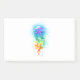 Large, iridescent, artistically drawn, bright jellyfish, with long tentacles on white, painted over with multicolored watercolor background. Rainbow jellyfish.