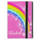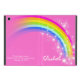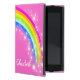 Cute pretty bright and colorful rainbow ipad mini folio or other iPad case of your choice. Original graphic patterned book style type case with a pink background. Customise with the long name of your choice. Example reads Elizabeth. Plus if found address details can be placed on the reverse just in case your child is absent minded on occasions, if you don't want this simply delete the text. This original case is designed by Sarah Trett.