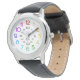 This classic analog watch features hands that are labeled 'Hour' and 'Minute'. The colorful watch face has the hours indicated in color, while the smaller black numbers indicate the minutes. Large, easy to read numbers also make this a great first time watch for kids or young adults. You can choose your own color leather strap and bezel (on sport models)! The sport model features a rotating bezel that will allow kids to learn advanced timekeeping that they may need for timing purposes or how much time has passed. Designed with a solid stainless steel case, genuine leather strap, and a durable as well as accurate Japanese Quartz movement it is a timepiece that will last as well as function accurately. 30 Meter water resistance protects against rain and general hand washing (DO NOT wear in shower, bath or while swimming). Includes a 1 Year Manufacturer's Warranty.