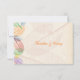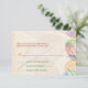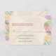A rainbow color palette of leaves showing their delicate venation is displayed on the right side of this wedding response card. The background is a delicate, slightly distressed ecru color with large leaves watermarked on top. The reverse shows the same background to highlight the couple's names. Perfect for any rainbow-themed wedding! Available with matching products.