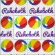Show pride in your hometown! Fabric features a row of rainbow beach balls, with REHOBOTH in a pretty purple font.