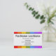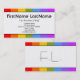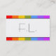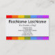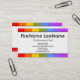 This business card design features rainbow-like patterns at the top and the bottom, with customizable details in between.