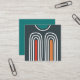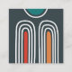 Blue, teal, terracotta red and white lines artwork. Boho rainbow abstract art.