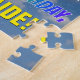 This vibrant, fun, and eye-catching birthday themed puzzle design features a blue sky with clouds pattern background, a large number "21" and "HAPPY BIRTHDAY," both having a multicolored rainbow spectrum inspired gradient pattern, and a customizable name. A caring, happy, and editable birthday puzzle like this might be a fun way to send a greeting in celebration of somebody’s twenty first birthday. [~Z0000375]