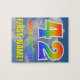 This eye-catching, fun, and vibrant birthday-themed puzzle design features a cloudy blue sky pattern background, a large number "42" and "HAPPY BIRTHDAY," both having a multicolored rainbow spectrum inspired gradient pattern, and a customizable name. A happy, colorful, and customizable birthday puzzle like this might be a fun way to send a birthday message in celebration of somebody’s forty second birthday. [~Z0000375]