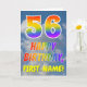 This fun and colorful 56th birthday greeting card design features a depiction of a blue sky with clouds, along with a large number "56" and the message "HAPPY BIRTHDAY," having a rainbow spectrum inspired gradient pattern coloring, on the front. The front also features a customizable recipient name. The inside features a personalized birthday greeting message, or could perhaps be cleared and left blank if a message is to be written by hand instead. A personalized birthday card like this might be a fun way to send a message in celebration of somebody’s fifty sixth birthday. [~Z0000371]