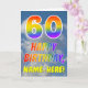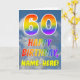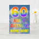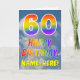 This fun and colorful 60th birthday greeting card design features a depiction of a blue sky with clouds, along with a large number "60" and the message "HAPPY BIRTHDAY," having a rainbow spectrum inspired gradient pattern coloring, on the front. The front also features an editable recipient name. The inside features a customizable birthday greeting message, or could perhaps be cleared and left blank if a message is to be written by hand instead. A customizable birthday card like this might be a fun way to send a message in celebration of somebody’s sixtieth birthday. [~Z0000371]