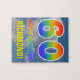 This exciting, fun, and eye-catching birthday-themed puzzle design features a cloudy blue sky pattern background, a large number "60" and "HAPPY BIRTHDAY," both having a multicolored rainbow spectrum inspired gradient pattern, and a custom name. A caring, colorful, and editable birthday puzzle like this might be a fun way to send a greeting in celebration of somebody’s sixtieth birthday. [~Z0000375]