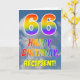 This fun and colorful 66th birthday greeting card design features a depiction of a cloudy blue sky, along with a large number "66" and the message "HAPPY BIRTHDAY," having a rainbow spectrum inspired gradient pattern coloring, on the front. The front also features the personalized name of the card’s recipient. The inside features a customized birthday greeting message, or could perhaps be cleared and left blank if a message is to be written by hand instead. A customizable birthday card like this might be a fun way to send a message in celebration of somebody’s sixty sixth birthday. [~Z0000371]