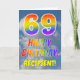 This fun and colorful 69th birthday greeting card design features a depiction of a cloudy blue sky, along with a large number "69" and the message "HAPPY BIRTHDAY," having a rainbow spectrum inspired gradient pattern coloring, on the front. The front also features an editable recipient name. The inside features a customizable birthday greeting message, or could perhaps be cleared and left blank if a message is to be written by hand instead. A customizable birthday card like this might be a fun way to send birthday wishes to somebody who is celebrating their sixty ninth birthday. [~Z0000371]