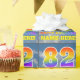 This eye-catching, fun, and exciting birthday-themed wrapping paper design features a cloudy blue sky pattern background, a large number "82" and "HAPPY BIRTHDAY," both having a multicolored rainbow spectrum inspired gradient pattern, and an editable name. Wrapping paper like this might be a fun way of wrapping a birthday present or gift being given to somebody who is celebrating their 82nd birthday. [~Z0000372]
