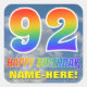 This exciting, fun, and eye-catching birthday-themed sticker design features a cloudy blue sky pattern background, a large number "92" and "HAPPY BIRTHDAY," both having a multicolored rainbow spectrum inspired gradient pattern, and an editable name. Fun and colorful stickers like this might be used when wrapping gifts being given in celebration of somebody’s ninety second birthday. [~Z0000374]