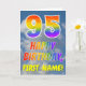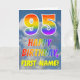 This fun and colorful 95th birthday greeting card design features a representation of a clouded blue sky, along with a large number "95" and the message "HAPPY BIRTHDAY," having a rainbow spectrum inspired gradient pattern coloring, on the front. The front also features the custom name of the card’s recipient. The inside features a customized birthday greeting message, or could perhaps be cleared and left blank if a message is to be written by hand instead. A custom birthday card like this might be a fun way to send birthday wishes to somebody who is celebrating their ninety fifth birthday. [~Z0000371]