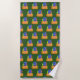 Have fun in the sun and on the beach with this large beach towel that features a colorful image of a Rainbow Lorikeet parrot against a green background and printed in a repeating pattern.