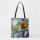 Carry a piece of nature with you wherever you go with this vibrant tote bag featuring two stunning rainbow lorikeets perched on a branch. Their vivid plumage in shades of green, blue, yellow, and red captures the charm and brilliance of these iconic birds.