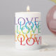 The design on this RAINBOW LOVE 3"x4" pillar candle is the word "LOVE", in rainbow colors, repeated six times, overlapped in a casually pleasing way. * Other candles, and matching products are in the COLORS category of my shop. ** If you'd like to transfer this design to another product type, shape, or size, please check my shop first to see if I have one already done, because I'll have fiddled with it to make the design fit just right and it will save you the bother. Sometimes designs transfer ok, sometimes they don't. Just fyi. If you need help, or have a question please me.