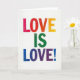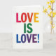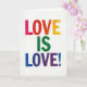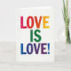 This card features the words “LOVE IS LOVE!” stacked in the center on a plain white background. The letters are tall and easy to read, with a slightly worn texture that shows tiny white specks inside the color. The first “LOVE” starts with warm shades, moving from pink to red to orange-yellow. “IS” sits in the middle in a rich green, acting like a calm pause between the two lines. The final “LOVE!” shifts into cooler tones like bright blue, deep blue, and purple, ending with a blue exclamation mark. With nothing else on the front, the message feels direct and supportive, like a clear statement of care for someone you love or stand beside. It’s a meaningful choice for a partner, a close friend, or anyone you want to remind that their love matters 🥰❤️. Hope it helps you share your Valentine’s Day feelings in a kind, simple way.
