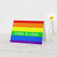 Gay Pride rainbow striped card that reads Love is Love. Cute LGBTQ romantic card for a your gay, lesbian, bisexual, transgender, or pansexual wedding or anniversary gift.
