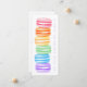 This charming macaron birthday party invitation features the image of an asymmetric stack of 6 topsy turvy, rainbow-colored macarons on the front with the text "Please celebrate with us" oriented vertically to the right of the macaron stack - personalize her party details on the back - by katz_d_zynes