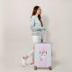 Featuring my cute, magical, rainbow-haired unicorn illustration with long lashes. Play with different color options, change up the pink background as desired. A thoughtful gift for that next trip.
