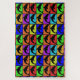This ocean-inspired jigsaw puzzzle design contains the silhouettes of dolphins presented in a large matrix of muti-color rectangles, including turquoise, yellow, orange, red, purple, and royal blue. If you're a beach lover or have a passion for these amazing intelligent sea mammals, this puzzle might be just the right fun challenge.