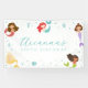 Make waves at your little mermaid’s birthday party with this under-the-sea backdrop banner! Featuring a whimsical crew of colorful mermaids and coral reef details, this large personalized banner is perfect for behind the dessert table, photo ops, or party entrance. A splashy way to celebrate a shell-ebration they’ll never forget!