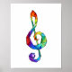 Polygonal, rainbow, bright musical key on white background. Polygon tattoo. Treble clef