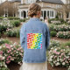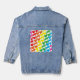 A cute multicolor rainbow musical notes pattern eighties inspired retro aesthetic stationery style music lover adorable happy design denim jean jacket. Get a cute and colorful notes denim jean jacket today.