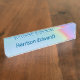 Rainbow desk name plate features a blue sky lit by a colorful rainbow with custom text. © Morning 6