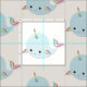 Rainbow Narwhal Kawaii Pattern in Pastel Blue Fabric