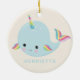 Rainbow Narwhal Kawaii Pattern Pastel Blue Name Ceramic Ornament