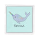 A cute narwhal with a rainbow horn and spots. Personalise by changing the name below the whale.