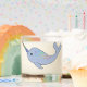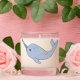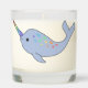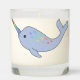 A cute narwhal with a rainbow tusk is smiling on the front and back of the jar.