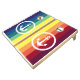 Natural Wood Cornhole Set, Yellow and Purple bags