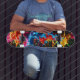 Ignite your ride with our striking rainbow neon paint splash skateboard design. Vibrant, fluorescent splashes of color burst across a sleek black background, creating a bold contrast that is as eye-catching as it is dynamic. This design embodies energy, creativity, and the spirit of street art, making it perfect for skaters who love to stand out. Whether you're cruising the streets or showcasing your deck, the neon rainbow splashes will ensure all eyes are on you. Add an electric touch to your skateboarding style with this vivid, artistic masterpiece.