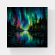 Pretty rainbow abstract northern lights reflecting on water. The pine trees are mostly in silhouette. Reminds me of one of those retro style paintings on black velvet featuring an Alaskan scene. This is mostly AI generative design. I made some changes.