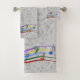 Contemporary music design featuring rainbow music notes on gray music notes pattern to add a touch musical style class to any bathroom or en suite