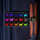Rows of cats in a rainbow of colors with an antique texture to give it the look of stamped cutouts on a tapestry, make an interesting and eye-catching artwork for cat lovers.