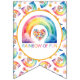 Bring the party to life with this colorful birthday bunting banner featuring a watercolor rainbow, floral hearts, and bold rainbow lettering. The repeating pastel pattern ties beautifully with the full Rainbow of Fun collection, making it a perfect backdrop for dessert tables, photo ops, or entryways. Pre-strung and ready to hang—just personalize and celebrate!