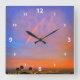 Rainbow orange blue sunset sky landscape photo square wall clock