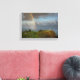 Canvas landscape print of a rainbow and some dark gray rain clouds over Kilauea Lighthouse on a big rock in the Pacific Ocean on the North Shore of Kauai, Hawaii, USA.