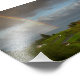 Photo print of a rainbow under some dark gray rain clouds over Kilauea Lighthouse on a big rock in the Pacific Ocean on the North Shore of Kauai, Hawaii, USA.