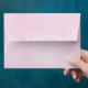 Expectations met; I liked that I had the opportunity to include our address on the back of the envelope. This color matched very well with my save the date. The color was the same as shown above. I had our address labeled on the back of the envelope and the font/printing met my expectations.