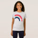 Your birthday kid will love this custom guest of honor t-shirt featuring a rainbow in blue, pink and coral and teal. Age is customizable. Part of a collection for Parcel Studios.