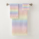 Here is a lovely, soft set of bath towels in pastel rainbow colors.