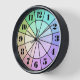 A pie chart style face in a rainbow array of pastels, with large, black numerals