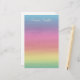Personalized stationery in a pastel blue, pink, yellow, and green rainbow pattern. Text, font, font size, color and placement are completely customizable, so make it your own.