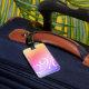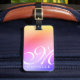 custom luggage tag with leather strap: large rainbow pastel script monogram and name