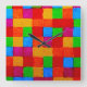 Rainbow Patchwork Quilt Colour Grid Abstract Square Wall Clock