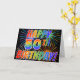 The front of this exciting, fun and eye-catching greeting card design features a colorful celebratory fireworks inspired pattern, along with the message "HAPPY 50TH BIRTHDAY!" having a multicolored rainbow like gradient pattern, on a black colored background. The inside features a customized greeting message, or could perhaps be cleared and left blank if it is desired to write a message by hand instead. A greeting card like this might be fun to send to somebody celebrating their fiftieth birthday. [~Z0000355]